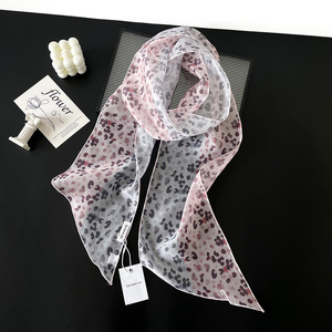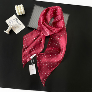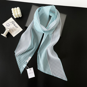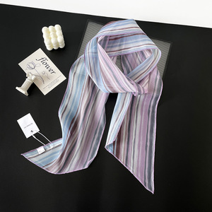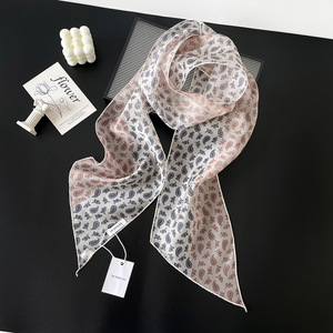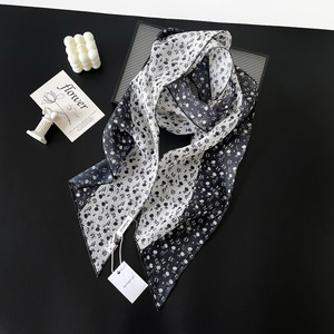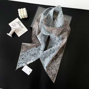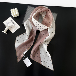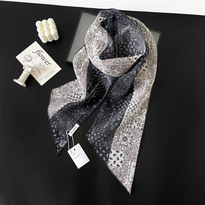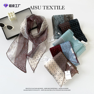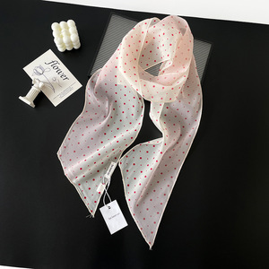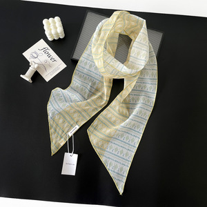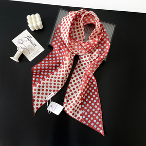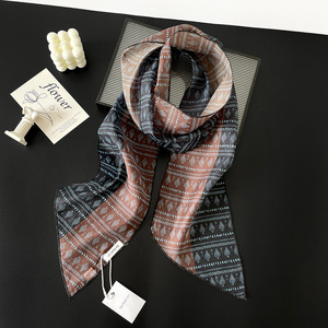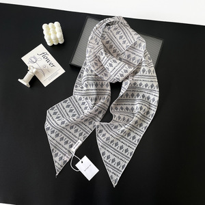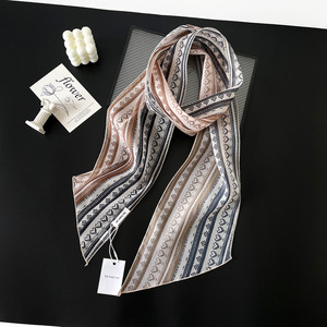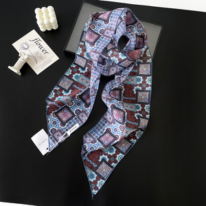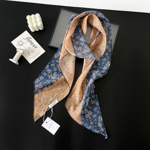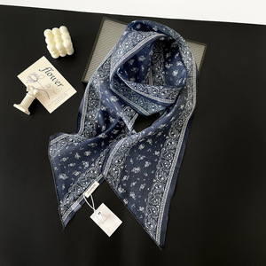 女性用斜めの小さなリボン付きシルクスカーフ、首元に結ぶ長い小さなシルクスカーフ、レトロなスカーフ、カシューフラワー装飾の小さなスカーフ卸売