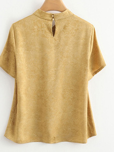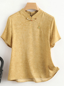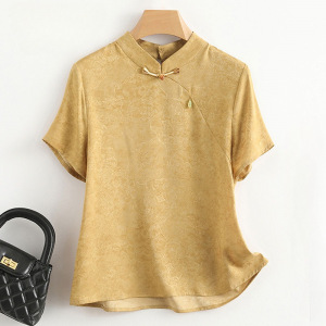 新しい中国風のナショナルスタイルのボタン付きハイエンドジャカード半袖シャツ Tシャツ女性のための 2025 夏の新しいシルクスリムトップ