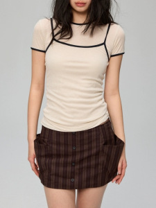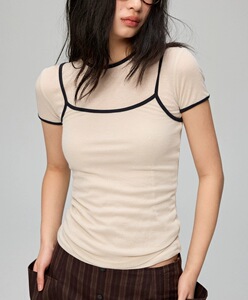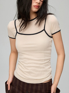 “胶囊叠穿” 真两件吊带背心短袖T恤女2025新款夏季修身上衣