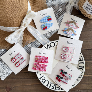 新しい子供の生地フルーツチェック柄ヘアピン漫画甘いプリーツ女の子ヘアアクセサリー額の前髪ヘアアクセサリー