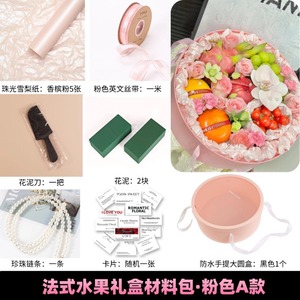 フレンチフルーツフラワーボックス素材パッケージ【ピンクA】直径36cm 高さ14.5cm