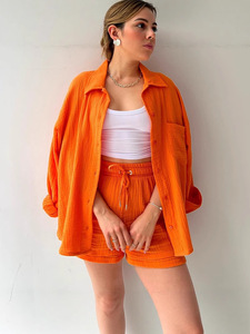 ヨーロッパとアメリカの 2025 女性の新しいファッションカジュアルツーピースラペル長袖シャツハイウエスト巾着ショーツスーツ女性