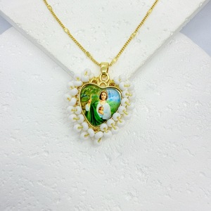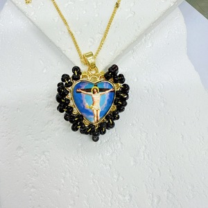 ヨーロッパとアメリカのファッションゴールデン手織りキビビーズ愛聖母ペンダント女性ジュエリーパーソナライズされたオリジナルネックレスペンダント