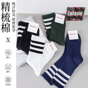 袜子女配鲨鱼裤中筒棉袜休闲百搭四季款情侣条纹网红长袜ins运动