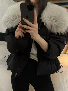 在庫ありレディース冬人気ショートウエストフォックスファーラージファー襟ダウンジャケットレディース韓国風ルーズジャケットレディース