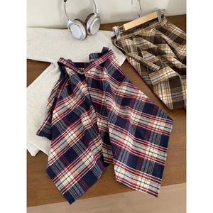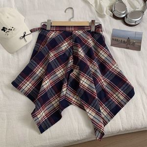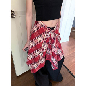 アメリカンレトロな不規則なチェック柄のパッチワークレイヤードバットカーテン、女性のファッショナブルで多用途なホットガールのハイエンドスカート