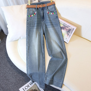 テンセル夏薄いハイウエストストレートワイドレッグジーンズ女性の 9 点ストレートレッグパンツ女性のルーズ新スタイル 3303