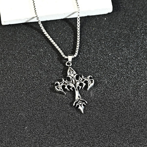 欧美饰品批发复古潮流霸气圣剑铸造十字架火焰吊坠钛钢男女士项链