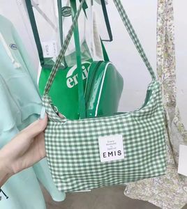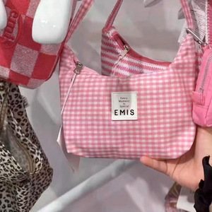emis 韓国トレンドブランドのチェック柄脇の下バッグ、キュートな女の子のハンドバッグ、格子柄のニッチデザイン、軽量ショルダーバッグ