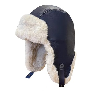 大人の革防水暖かい雷峰帽子メンズアウトドアオートバイスキープラスベルベットフライトハットレディース耳保護帽子