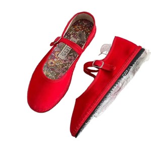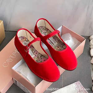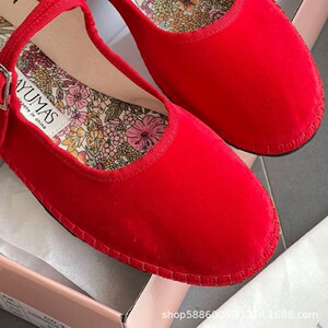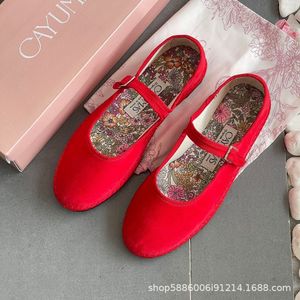 ニッチな真っ赤な新しいレトロなメリージェーンの女性の靴ベルベットバックルフラット浅い口の靴快適なおばあちゃんの靴