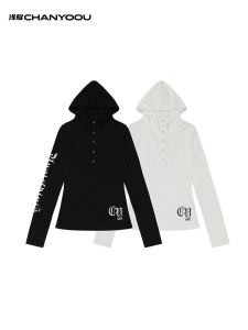 QIANYAO WOMEN'S | アメリカンレトロゴシック日焼け止めブラウスレディーストレンディブランドフード付き長袖Tシャツスリムチューブトップ