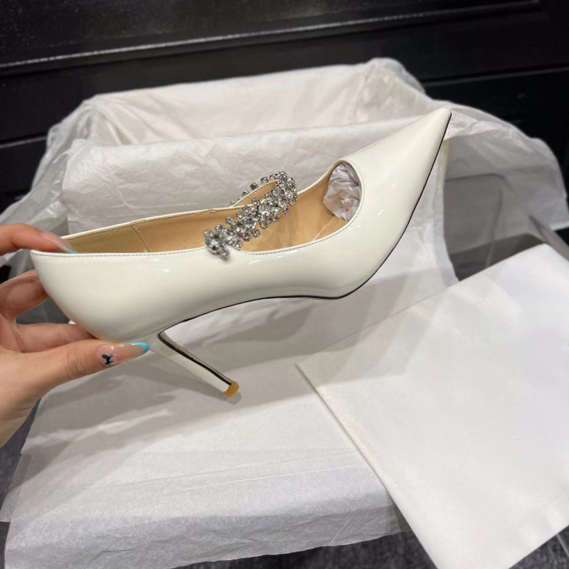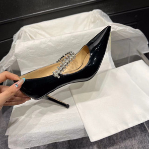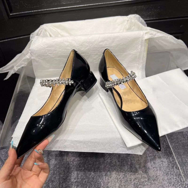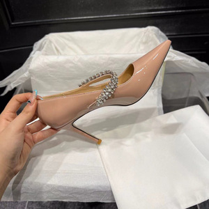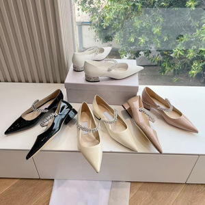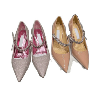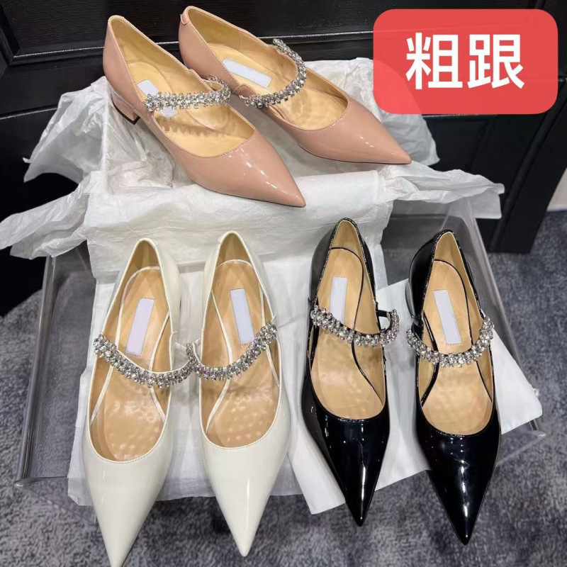 jc尖头水钻链条粗跟单鞋女2025新款漆皮法式细跟增高玛丽珍高跟鞋