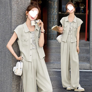 时尚套装2025年夏季新款女高级感纯色短袖阔腿裤两件套装
