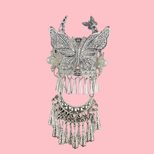 メタルヘッドクラウン貴州ミャオ族シルバー二層ネックレス大きな蝶冷蔵庫マグネット