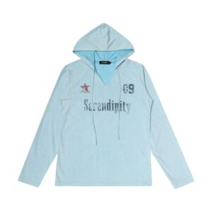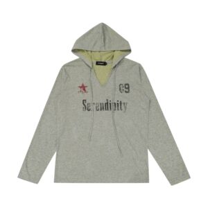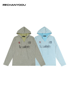 QIANYAO WOMEN'S | アメリカンレトロなまだら文字Vネック長袖トップス男女兼用薄手フード付き日焼け止めブラウス
