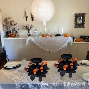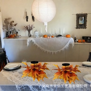 クロスボーダーシミュレーション黒壁掛けカエデの葉秋ハロウィン燭台家の装飾シミュレーション緑の植物