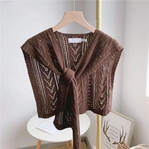 女性用ニットショール、春秋万能ネットセレブネックプロテクター、ストライプ空調室、中空夏用ベスト、フェイクカラー