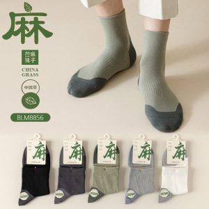 天然ラミーソックス メンズ 綿麻ソックス ゆる口カラーブロック 産後ソックス 抗菌防臭 足元ケア ミッドカーフソックス 工場直販
