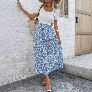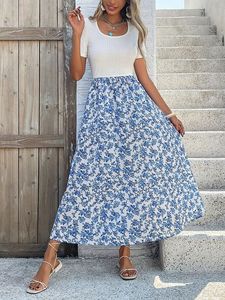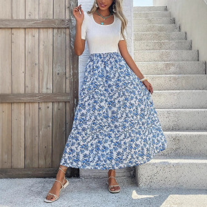 越境アマゾン 夏 レディース 2025年新作 小花柄プリントワンピース 欧米風婦人服 ミディアム丈花柄ワンピース