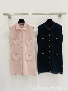 セレブの香りラペルノースリーブニットドレス女性の夏の気質ヘップバーンスタイルミドル丈膝上スカートライト高級スカート