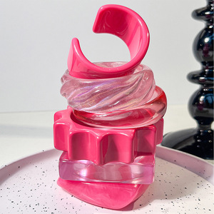 新しいヨーロッパとアメリカのファッションレトロな幾何学的な不規則なピンクのリング樹脂ブレスレット気質ニッチデザインブレスレット女性用