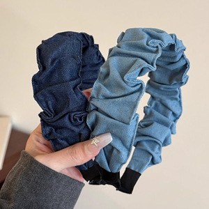 つば広デニムプリーツヘッドバンド、高級感、シンプルで多用途、顔が見える高頭頂部、小さなヘッドバンド、洗顔用ヘアピン、ヘッドバンド