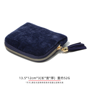 ネイビーブルー; タッセルジッパーバッグ 13*11.5*3CM