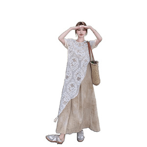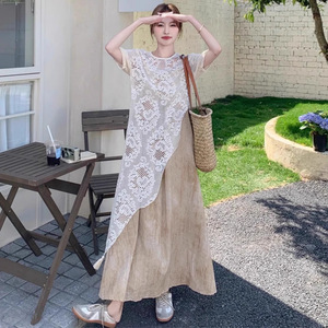 2025年初夏着用大きいサイズ婦人服フレンチレイヤードスーツサスペンダースカート太ったmmお腹カバーレースドレス