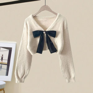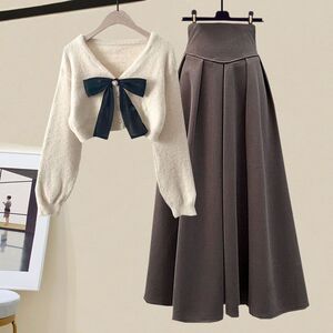 Xiaoxiangfeng スーツ女性 2025 春夏フレンチリボンカーディガンセーターと気質ハーフスカート 2 点セット