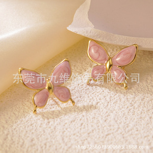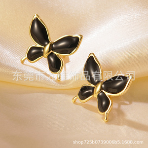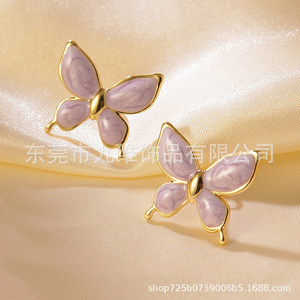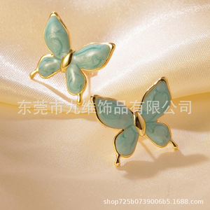 クロスボーダー新しい新鮮で甘いエナメル蝶のイヤリングパーソナライズされたオイルドリップ立体マルチカラー蝶ステンレス鋼イヤリング