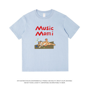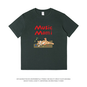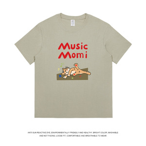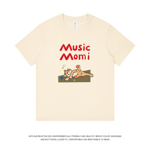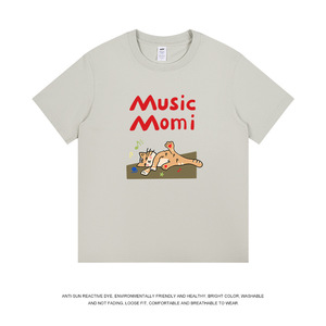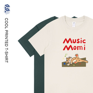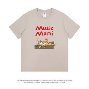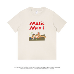 純綿の個性的なデザインプリント半袖Tシャツ、男女兼用、ゆったりとした白の和風トップス、夏のトレンド、卸売