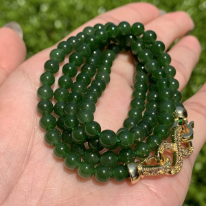 天然和田玉碧玉项链天然108颗小米珠女款玉石锁骨链国风圆珠颈链