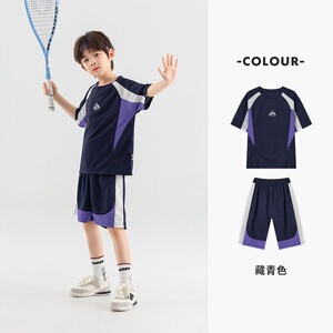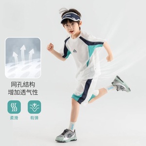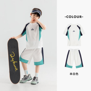 ボーイズスーツアイスシルク速乾性2025中大型子供用新しい夏子供用スプライシングツーピースルーズスポーツユニフォーム