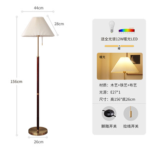 实木落地灯客厅沙发边设计感氛围灯百褶美式高档复古卧室床头台灯