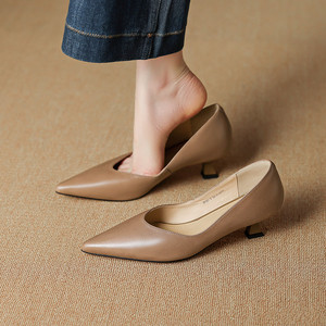 内外フルレザー、小さな革靴、第一層シープスキン、スティレットヒール、ポインテッドトゥパンプス、シンプルレトロ通勤ローヒール、キャットヒール