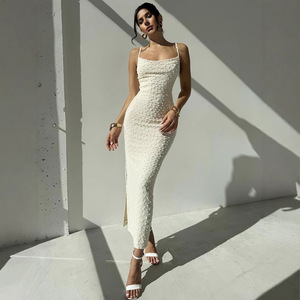外国貿易アマゾンの新しい女性のエレガントでロマンチックなアプリコットスパゲッティストラップウエストスリムフィットテクスチャード生地スリットロングスカート