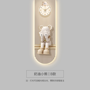 奶油风玄关装饰画暴力熊走廊过道钟表挂画轻奢高级感入户门壁灯画