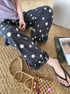 IM Island Bubble Salt 刺繍チェック柄耳ルーズパンツレディース夏薄い微フレアスリムカジュアルパンツ