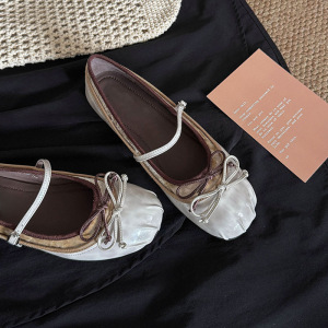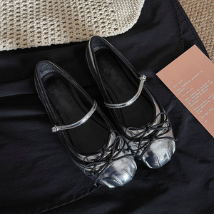 2025 夏の新フレンチフェアリースタイルスエードレースシングルシューズリボンフラットメリージェーンシューズ
