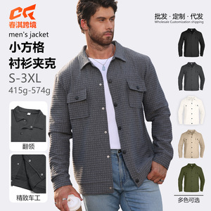 2025年クロスボーダー新作韓国版人気春秋メンズカジュアルジャカード小格子ルーズジャケットシャツ