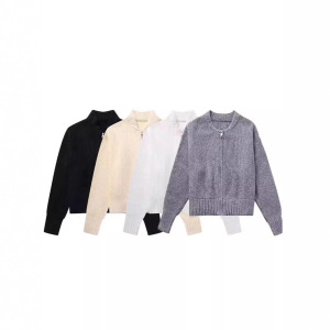 跨境欧美外贸服饰2024秋冬气质通勤舒适开衫毛衣外套女休闲百搭