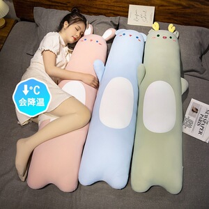 夏の涼しいアイスシルク通気性のある長い枕、女の子が寝室で寝るためのベッドサイドの横向き寝脚枕、取り外し可能で洗濯可能