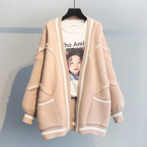 2025 新韓国スタイルトップスとジャケット女性のトレンディな秋ルーズ厚みのあるニット長袖セーターカーディガン
