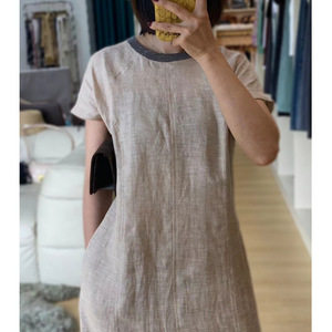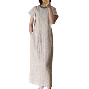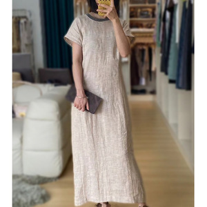 2025 新しい夏のラウンドネック半袖スリットドレス女性のハイエンドの軽い豪華な気質痩身ヒップロングスカート