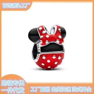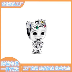 潘家新品上市白铜镀银小木人食人花爱心蝴蝶结串珠DIY手链手镯