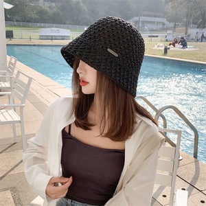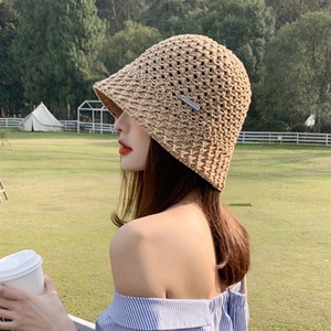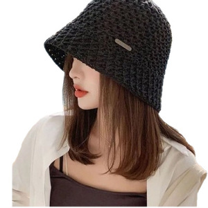 フィッシャーマンハットウィッグ一体型中空帽子ファッショナブルな薄いミディアムレングスのインターネットセレブスタイルの少しカーリーなウィッグ帽子