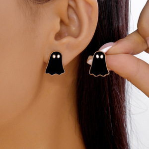 クロスボーダー新面白いハロウィンシリーズ白黒ゴーストペンダントネックレスイヤリングかわいいシンプルなネックレスイヤリング