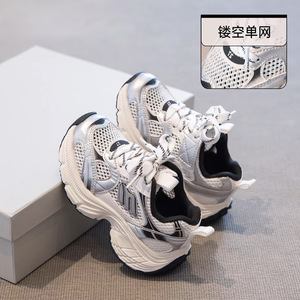 儿童小白鞋男童2025春夏季新款网面透气学生运动鞋白色板鞋男孩鞋