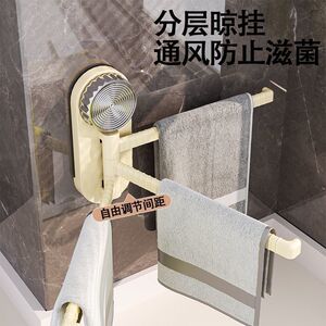 新しい吸盤タオルラックインターネットセレブパンチフリー壁掛け回転収納ラックバスルームタオルバーマルチロッド収納ラック